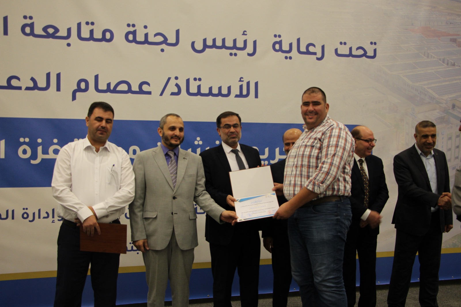 كما قدم السيد/ باجس الدلو "مدير دائرة الترويج والعلاقات المحلية والدولية بالهيئة" شكره واعتزازه بالصرح الاقتصادي الكبير الممثل بمدينة غزة الصناعية ومستثمريها، في كلمةٍ ألقاها مهنئاً كافة الشركات على هذا الجهد المقدر، داعياً الجميع للمضي قدماً نحو جعل المدينة الصناعية في أعلى المستويات المطلوبة بكافة المجالات.
