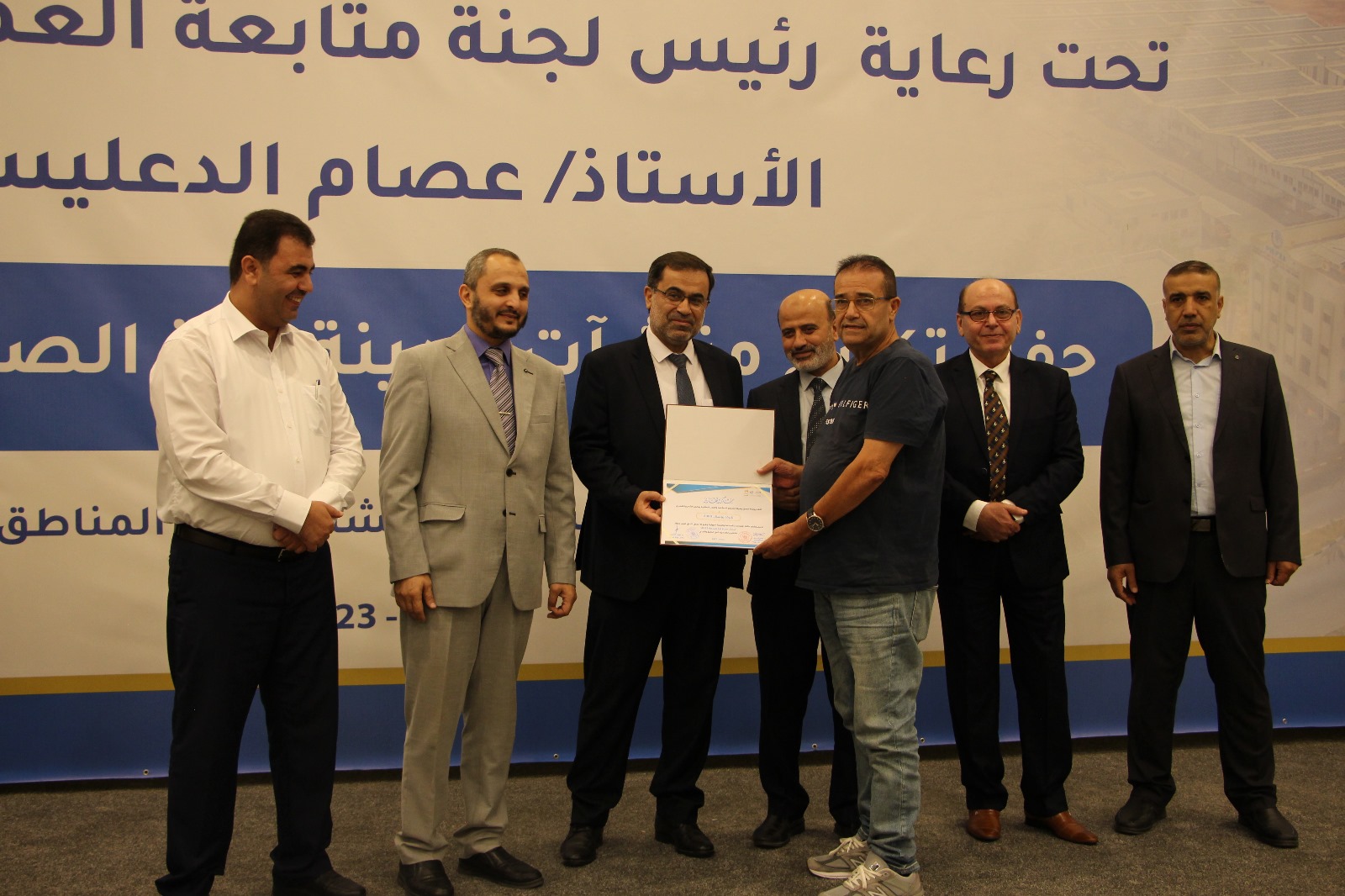 كذلك قدم رئيس مجلس إدارة الهيئة وكيل وزارة الاقتصاد الوطني م. عبد الفتاح الزريعي، الشكر لأصحاب المصانع المحتفى بهم، على صبرهم وجهودهم لتحسين بيئة العمل الخاصة بالعاملين.